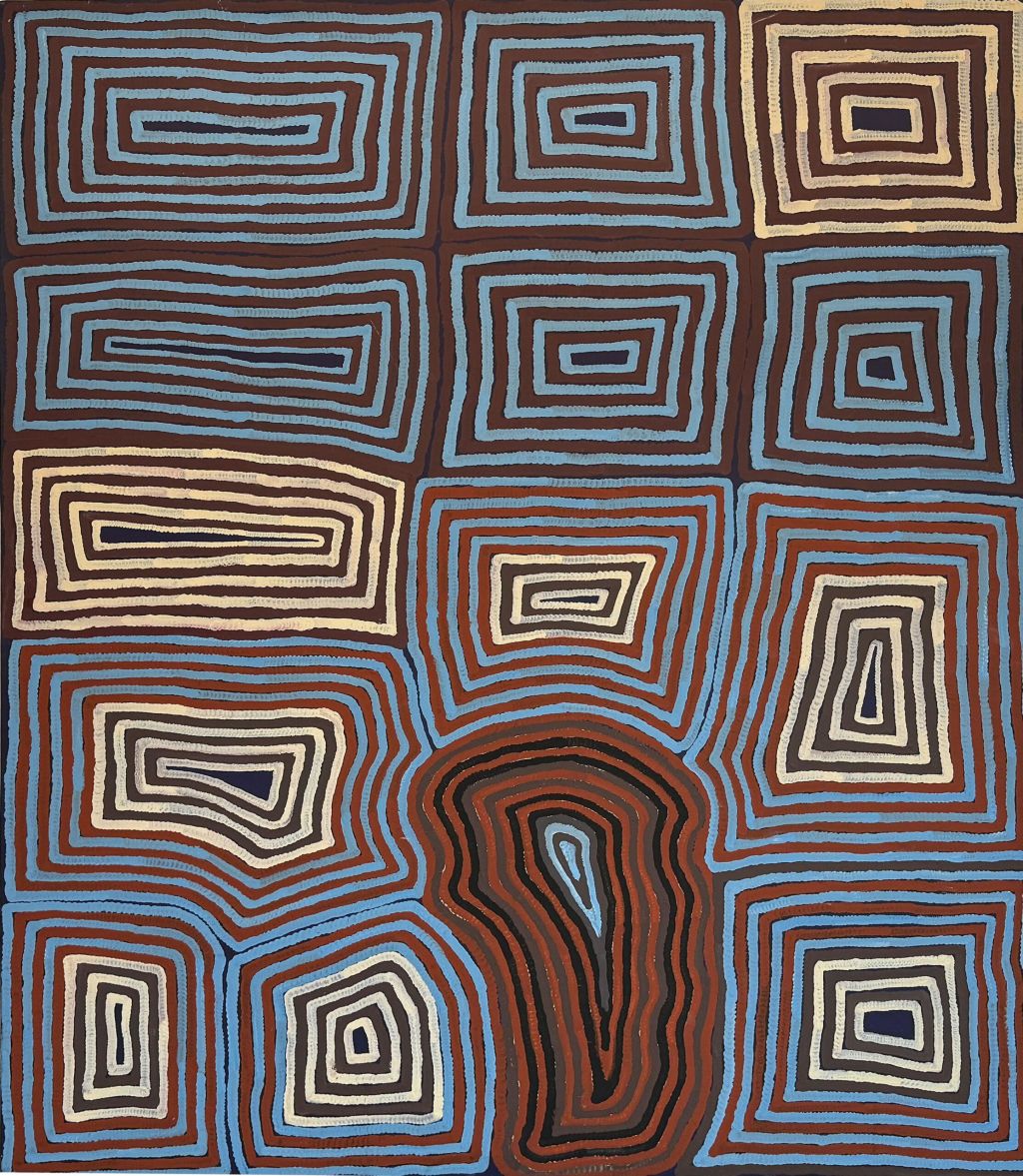 Becoming interested in the burgeoning art scene, Tjampitjinpa played a role in the establishment of the Kintore settlement in 1981 to reconnect with traditional lands. His art reflects a deep connection to his culture, maintaining a unique purity through the Pintupi style of circles and lines that represent the people, land, and Dreamtime. His art helps to revive Aboriginal culture, bridging the gap between European and Aboriginal life.